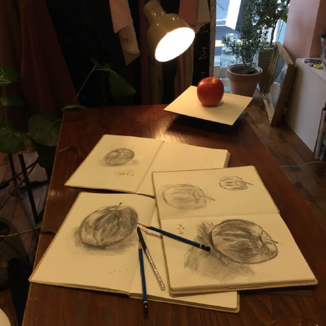 大人のアートスクールでは、デッサンや模写をマルバツつけずにサポートしながら、非日常的なアート空間を提供します。